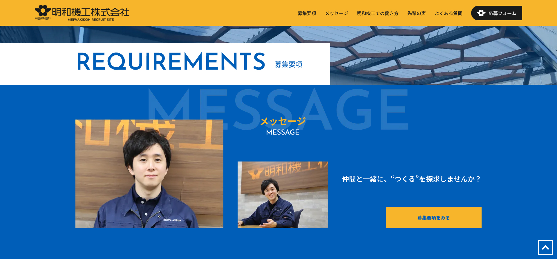 新着情報詳細 NEWS & TOPICS TOP 新着情報 新着情報詳細 新着情報一覧 NEWS DETAIL 2025-12-17 弊社リクルートサイトを一新いたしました! お知らせ 明和機工の職場の雰囲気や仕事内容をより分かりやすくお伝えできるようリクルートサイトを一新いたしました。スタッフのリアルな声や働く姿をご紹介しています。現場の空気感やチームの魅力を感じていただけると幸いです。ぜひ新しい採用サイトをご覧ください。 新着情報一覧へ