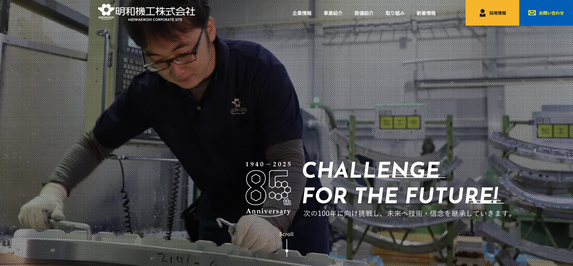 新着情報詳細 NEWS & TOPICS TOP 新着情報 新着情報詳細 新着情報一覧 NEWS DETAIL 2025-12-17 ホームページをリニューアルいたしました! お知らせ このたび、弊社コーポレートサイトをリニューアルいたしました。新しいサイトでは、事業内容をより詳しく紹介するとともに技術・製品情報や保有する機械設備を新たに掲載し、見やすく分かりやすい構成へと一新しております。今後も、皆さまに弊社の取り組みをより深くご理解いただけるよう内容の充実を図ってまいります。ぜひ、明和機工のリニューアルサイトをご覧ください。 新着情報一覧へ